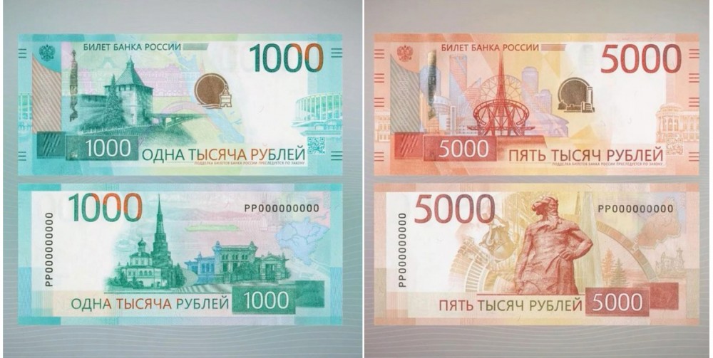 На купюре 1000 рублей появился Нижегородский кремль и Волга, банкноты номиналом 5000 рублей теперь будут посвящены Екатеринбургу и Уральскому федеральному округу. Ранее на пятитысячной купюре изображали Хабаровск, теперь этот регион останется только на старых банкнотах.