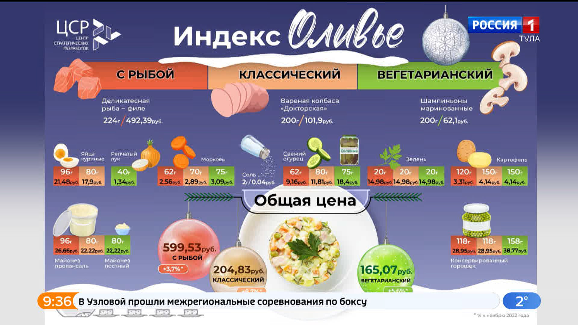 Традиционно новогодний стол в России не обходится без салата «Оливье». Специалисты «Центра стратегических разработок» посчитали стоимость трёх разновидностей салата.