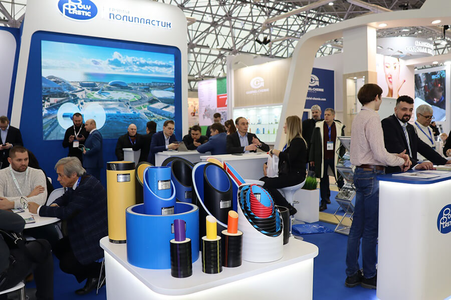 Помимо компаундов, гостям стенда Группы ПОЛИПЛАСТИК были представлены новейшие инженерные решения и образцы продукции для создания полимерных трубопроводных систем в различных сферах применения. Значимое место заняли изделия из полимеров. Группа ПОЛИПЛАСТИК презентовала наиболее востребованные потребителями и инновационные марки трубной продукции.