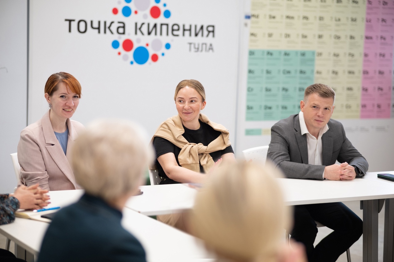 В Точке кипения в творческом индустриальном кластере «Октава» к обсуждению лучших практик развития малого и среднего предпринимательства в различных регионах присоединился Уполномоченный по защите прав предпринимателей Тульской области Александр Головин, представители центров «Мой бизнес» из Рязанской, Калужской и Владимирской областей.