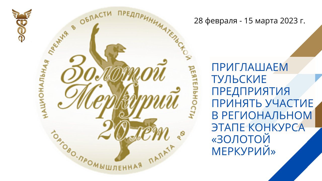 Национальная премия «Золотой Меркурий» была учреждена ТПП РФ в 2002 году и ежегодно присуждается лучшим предприятиям-экспортерам, лучшим малым предприятиям и предприятиям, внесшим серьезный вклад в развитие российского бизнеса. За это время в конкурсе приняли участие более 650 тульских организаций. На федеральном уровне лауреатами конкурса «Золотой Меркурий» стали 28 тульских компаний.