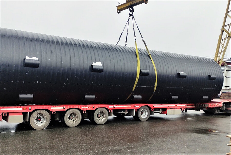 В ноябре прошлого года Группа ПОЛИПЛАСТИК отгрузил на объект резервуар серии СПИРОЛАЙН, состоящий из двух частей диаметром 2,8 метров и длиной более 13 метров каждая.