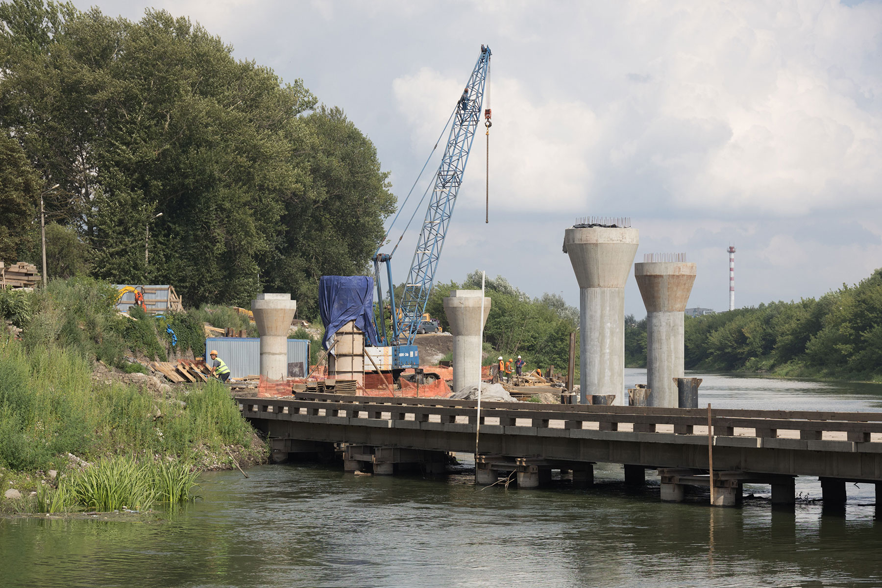 По его словам, мост через р. Упу готов на 35%. Установлены все сваи, возводятся опоры. Также ведутся работы по устройству ригелей, ростверков и подферменников. Илья Беспалов сообщил, что строительство идет по графику, рисков и отставаний нет. Работы будут завершены в 2024 году.