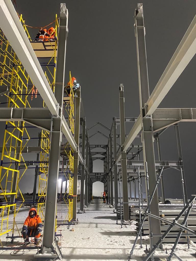 Строители подрядчика АО «ТЭК МОСЭНЕРГО» производят монтаж металлических конструкций изготовленных и доставленных на объект Тульским металлопрокатным заводом.