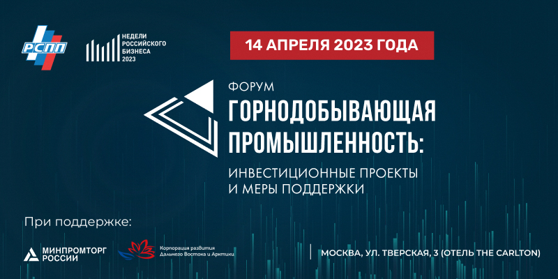 14 апреля 2023 года в Москве пройдет форум «Горнодобывающая промышленность: инвестиционные проекты и меры поддержки», организованный РСПП.