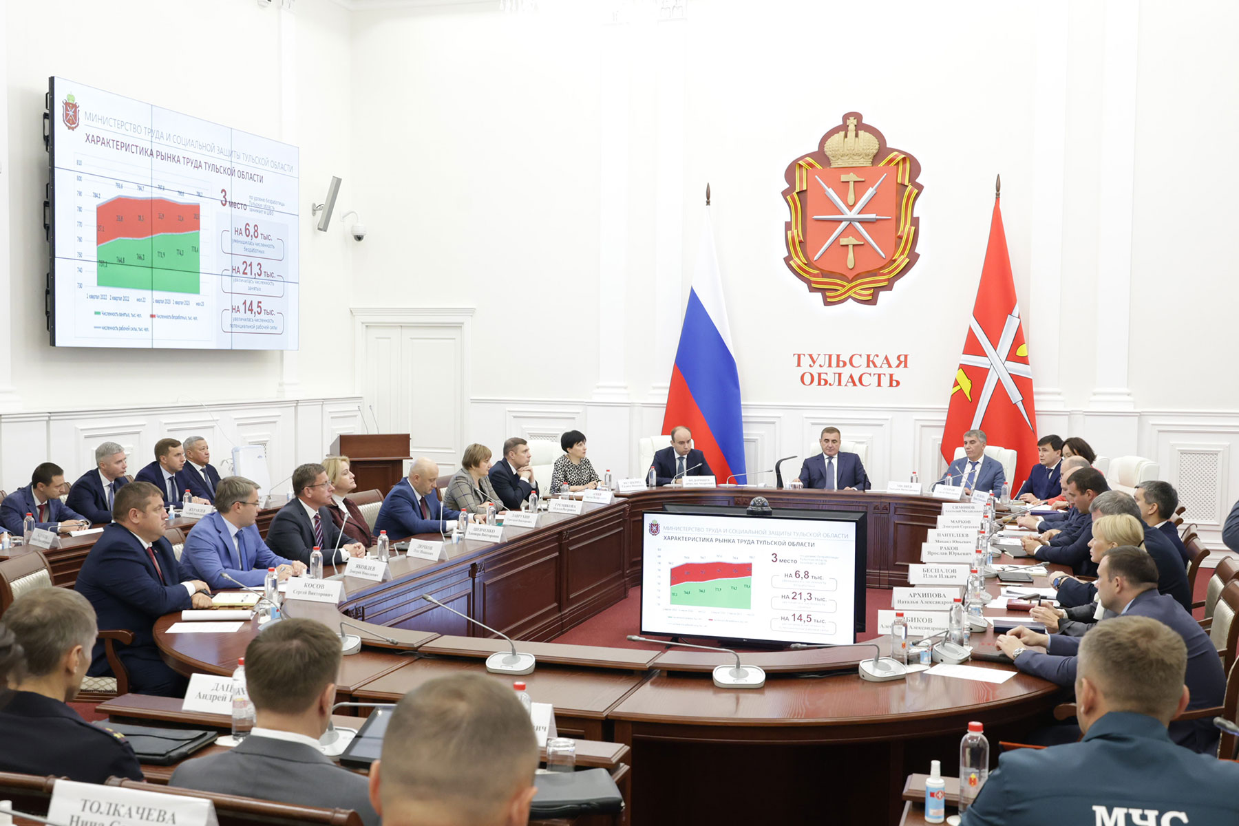 Алексей Дюмин отметил, что в Тульской области, как и в целом по стране, рекордно низкий показатель уровня безработицы. Вместе с тем в отдельных отраслях есть дефицит трудовых ресурсов.