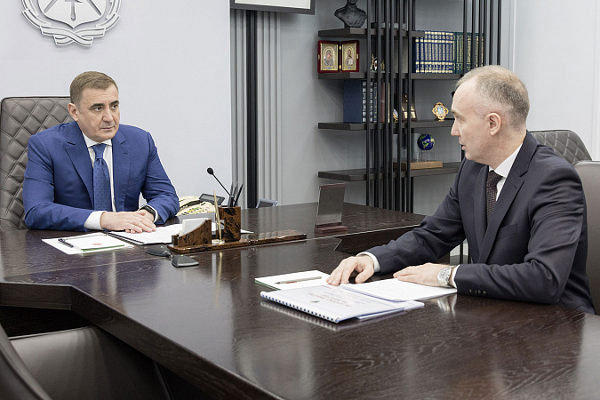 Губернатор региона обсудил с Владимиром Усовым итоги работы следственного управления в 2023 году Алексей Дюмин встретился с руководителем следственного управления Следственного комитета РФ по Тульской области Владимир