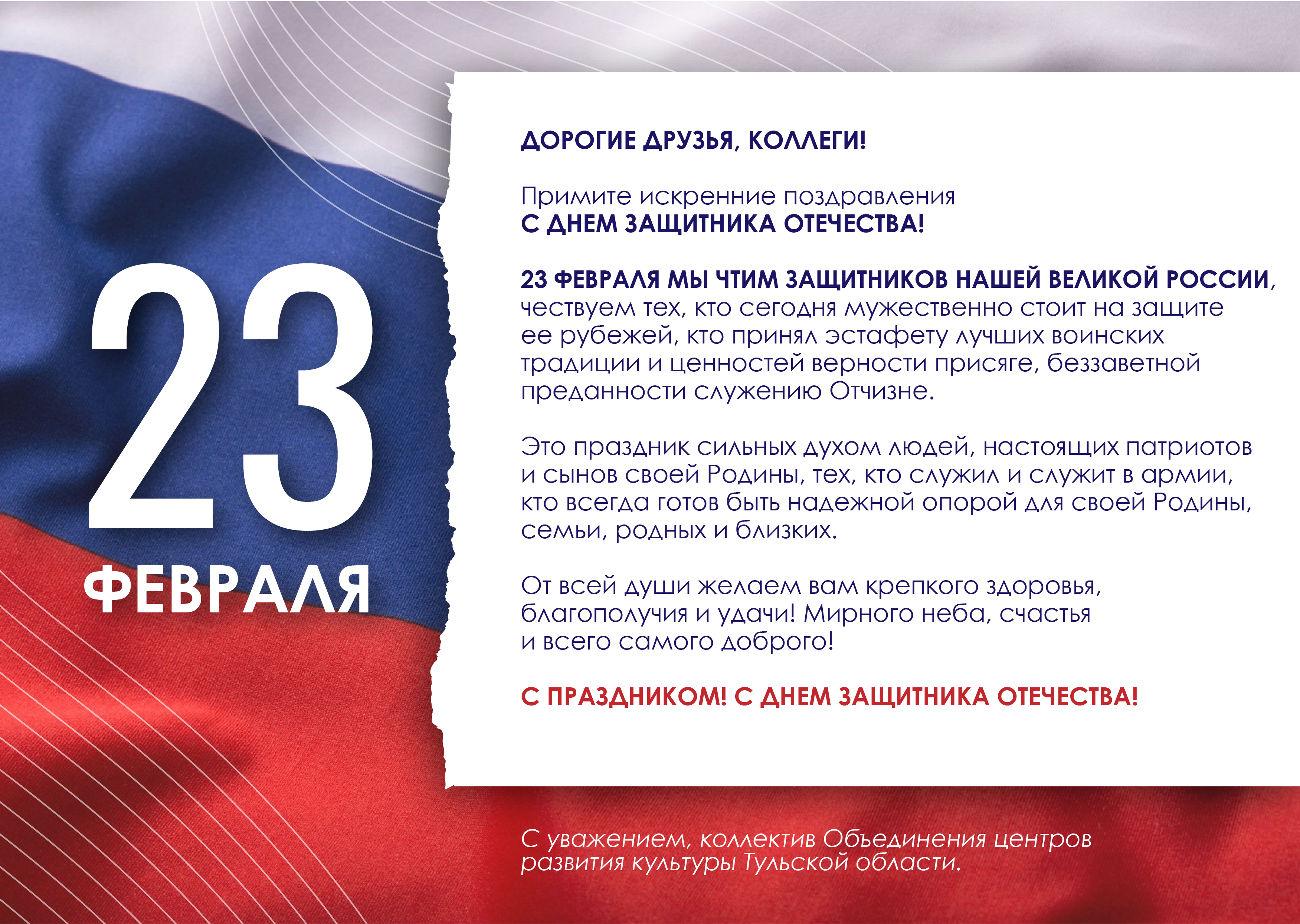 23 февраля мы чтим защитников нашей Великой России, чествуем тех, кто сегодня мужественно стоит на защите ее рубежей, кто принял эстафету лучших воинских традиции и ценностей верности присяге, беззаветной преданности служению Отчизне.