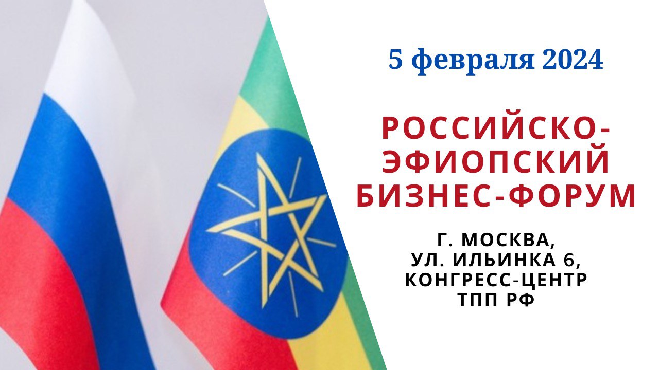 5 февраля 2024 года в 10:00 в Конгресс-центре Торгово-промышленной палаты РФ в смешанном формате состоится Российско-Эфиопский бизнес-форум с участием представительной делегации Федеративной Демократической Республики Эф