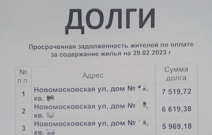 Жители одного из домов по улице Новомосковской пожаловались Тульской службе новостей на объявления, которые вывесила управляющая компания. В них содержится информация о должниках за жилищно-коммунальные услуги. Читатель ТСН24 возмутился, что номер его квартиры выставлен на всеобщее обозрение. Горожанин считает, что таким образом нарушаются его права.