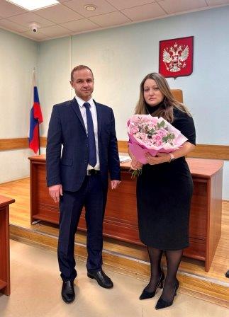 Председатель суда Е.И. Васьков поздравил Любовь Сергеевну с назначением на должность и пожелал ей успехов в профессиональной деятельности и решения поставленных задач.