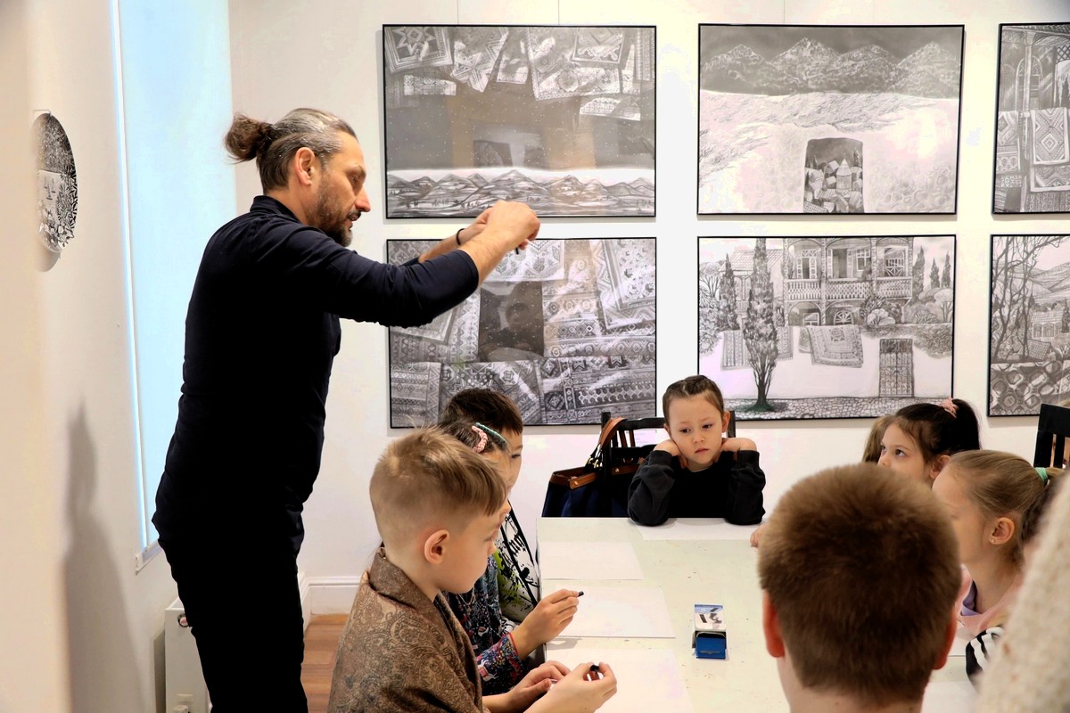 Преподаватель арт-студии «Композиция» Армен Аганесов и преподаватель школы «Развитие» Ирина Аганесова рассказали детям о творчестве художницы и обратили внимание на умение видеть особенности композиции и перспективы, показали на живых примерах, какие различные художественные приёмы можно использовать, работая с одним и тем же материалом.