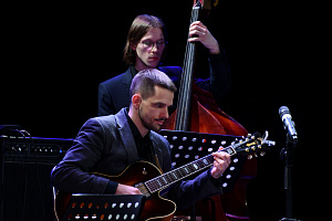 А оно в этот вечер было именно таким. Блестящие виртуозы – гитарист Павел Ершов, саксофонист Тимур Некрасов и кларнетист Владислав Денисов - играли музыку «классика жанра» Джанго Рейнхардта, современных авторов и оригинальные композиции так точно,, мастерски и стильно, что иногда казалось, что ты слушаешь фирменную виниловую пластинку, выпущенную в 40-50-х годах прошлого века, только без скрипа и потрескивания. Звучание поразительное.