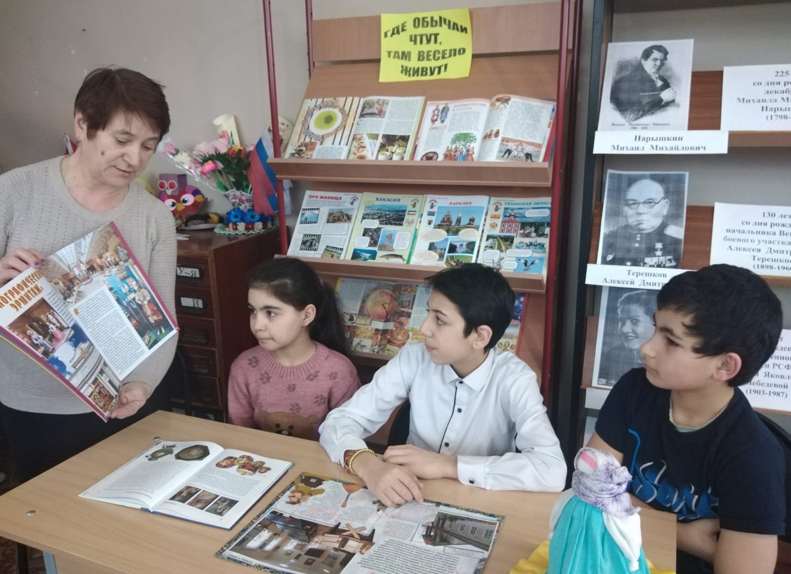 В Кукуйском СБФ проведён познавательный час «Где обычаи чтут, там весело живут!». Ребят познакомили с традициями на Руси (Осенины, Масленица, посиделки), всё вспомнили такие семейные традиции, как празднование дня рождения, Нового года. Вспомнили обычаи, пословицы и поговорки русского народа о гостеприимстве, хлебосольстве. Библиотекарь познакомила с журналами «Филя» и книгой «Песнь жар-птицы», в которых подробно и ярко рассказывается о традициях и обрядах народов России.