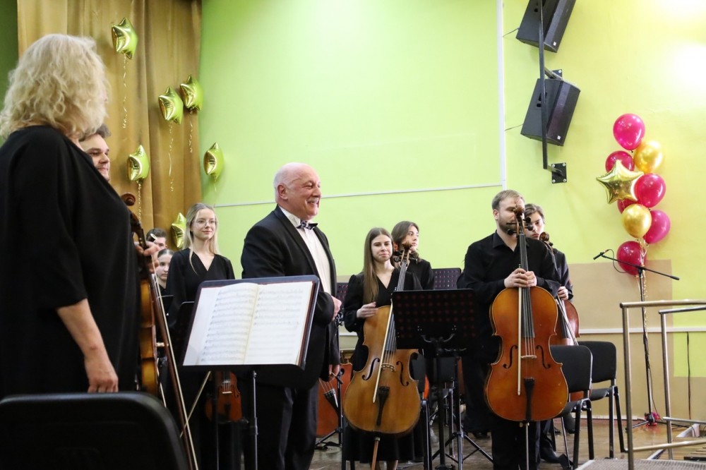 Юбилейный праздничный концерт открыло выступление молодёжного симфонического оркестра.