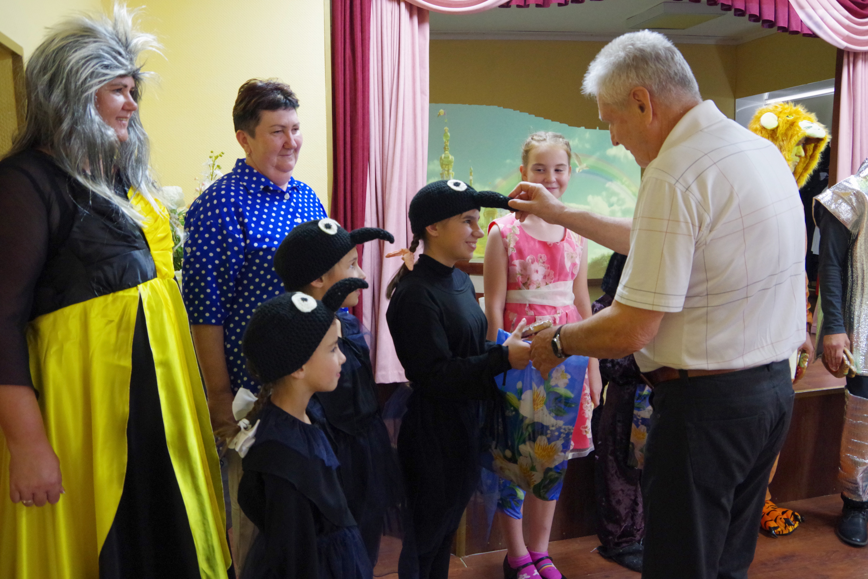 Праздник продолжился в актовом зале, где ребята показали спектакль. Героями поучительной сказки стали персонажи из «Волшебника изумрудного города», но сценарий авторы постановки придумали самостоятельно и сами же сделали яркие костюмы.