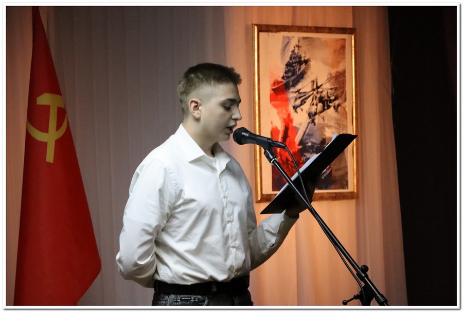 Студенты техникума пищевых биотехнологий прочитали стихотворения, а руководитель творческой студии «Ритм» Владимир Голоуленко исполнил песни, посвящённые танкистам.