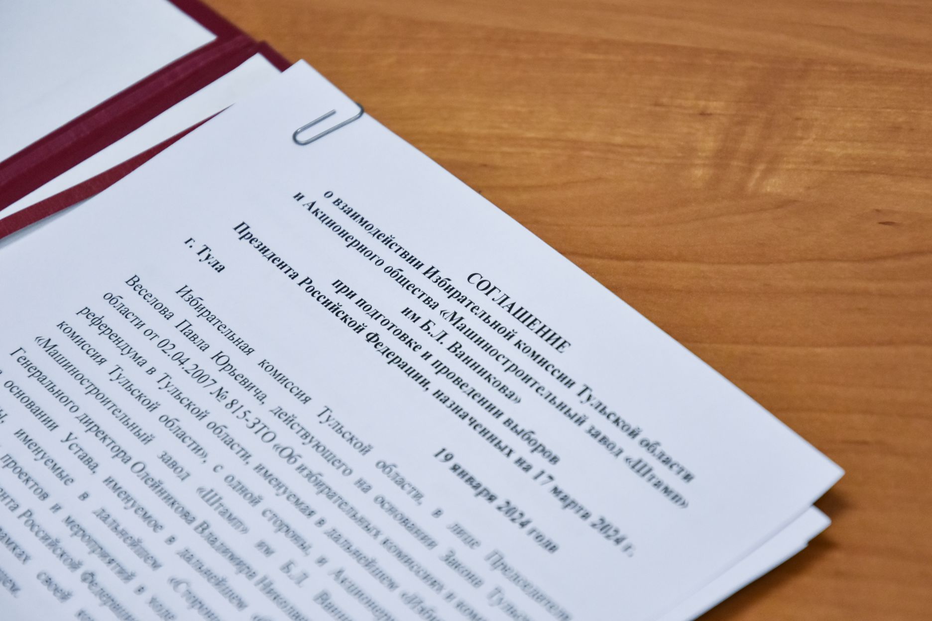 В пятницу, 19 декабря, состоялось подписание первых соглашений о взаимодействии избирательной комиссии Тульской области с АО «Машиностроительный завод „Штамп“ им. Б. Л. Ванникова» и АО «НПО „СПЛАВ“ им. А. Н. Ганичева».