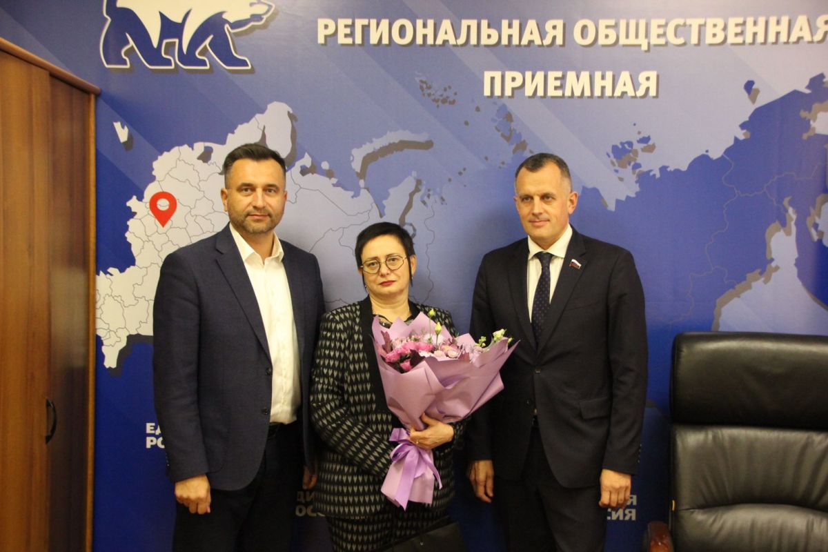 Прием начался с поздравления в адрес коллектива МБОУ «Центр образования № 44 им. Маршала Советского Союза Г. К. Жукова» с прошедшим Днем учителя. Теплые поздравления, букет цветов и подарки от Виктора Дзюбы, Дмитрия Афоничева и Александра Швыкова приняла директор учреждения Майя Трусова.