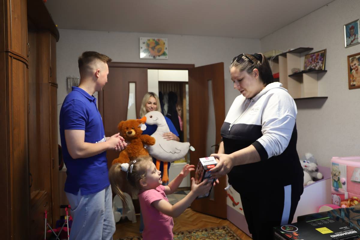 Супруг женщины мобилизован в Вооруженные силы Российской Федерации для участия в спецоперации в середине октября. Для родных и близких военнослужащего активисты передали необходимую бытовую технику, сладкие подарки и детские игрушки.