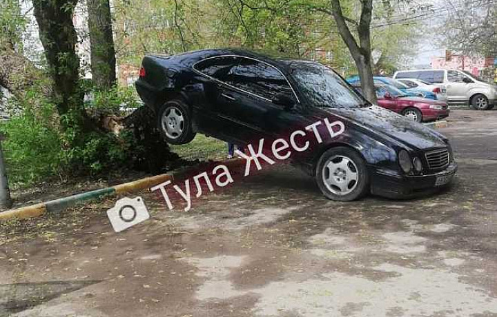 В Туле на улице Демонстрации произошел неприятный инцидент. В одном из дворов упавшее дерево зацепило автомобиль «Mercedes», который был припаркован рядом. Падение дерева приподняло заднюю часть машины, вызвав некоторые неудобства для ее владельца.