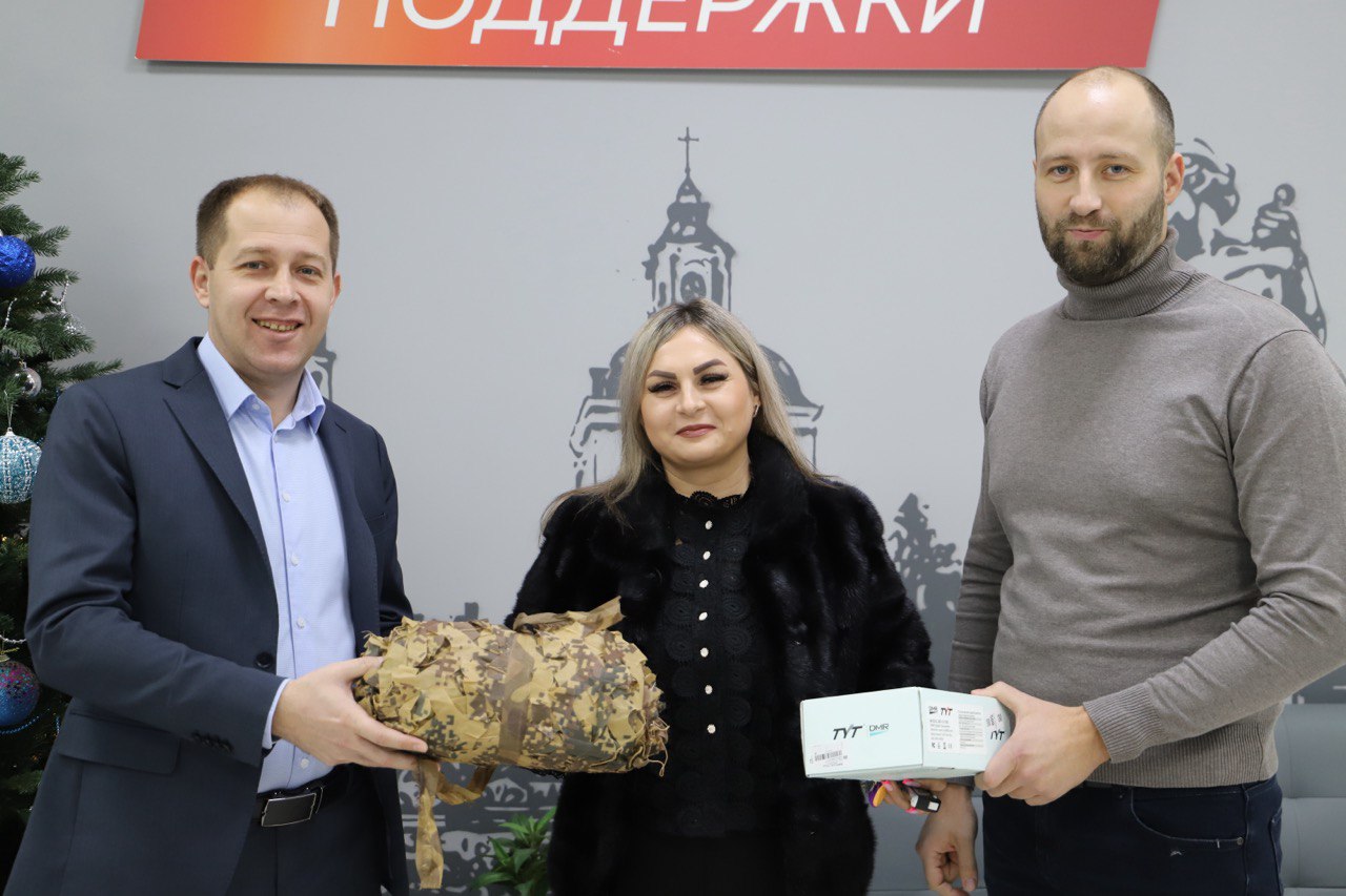 Депутаты-единороссы Тульской городской Думы Алексей Ишутин и Александр Шахов на площадке Штаба общественной поддержки Тульской области встретились с волонтером Надеждой Лаврухиной. Депутаты передали портативную радиостанцию и маскировочную сеть для наших военнослужащих.