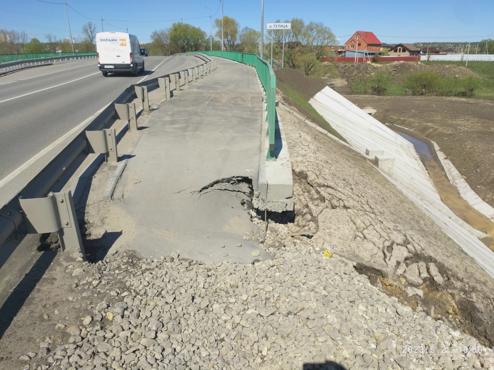 Его провели 5 мая. Выяснилось, что участок разрушения (размытия откосной части) произошел за границами зоны проектирования. Причина размытия - скопление поверхностных вод на границе мостового сооружения и подхода к нему.