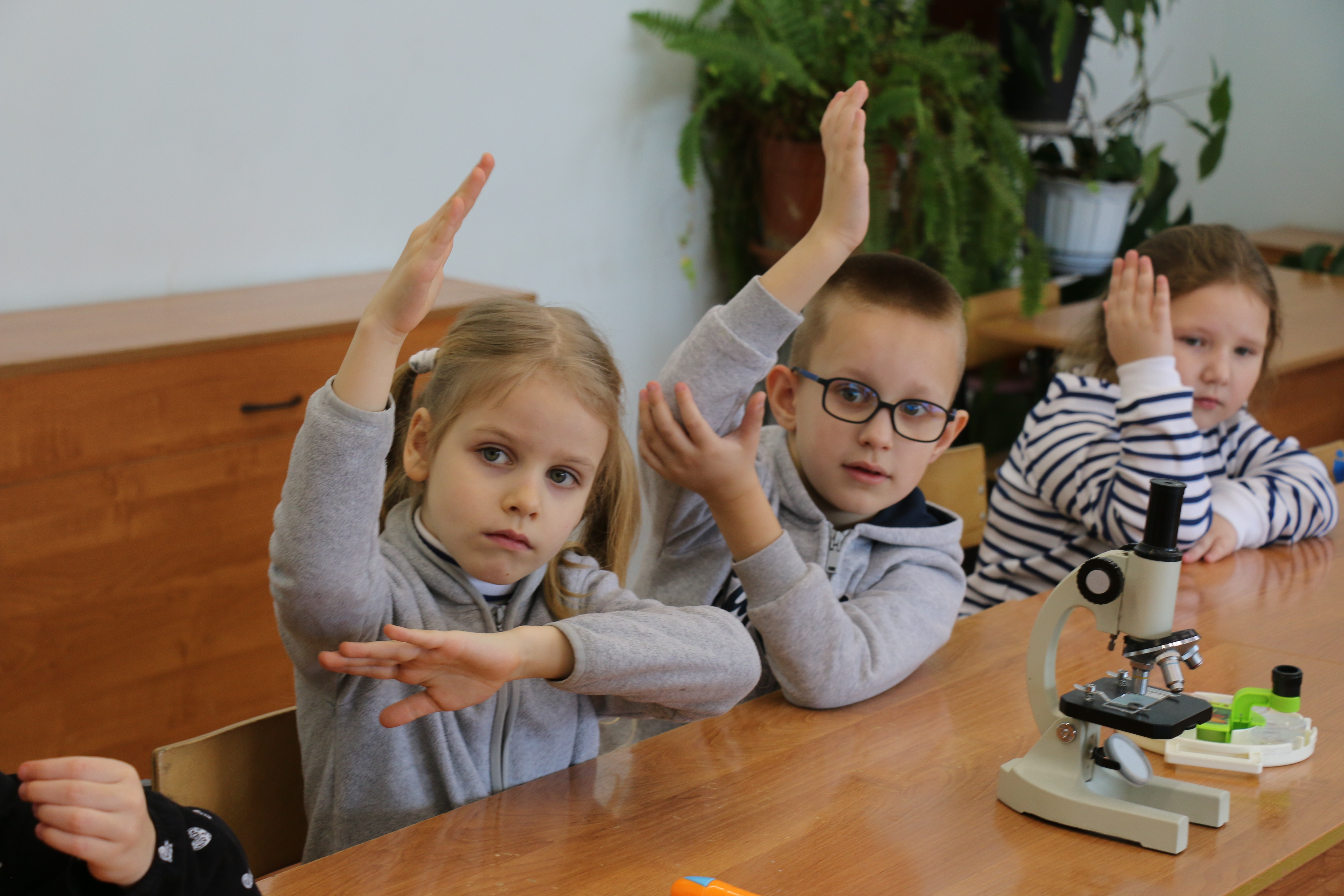 В течение всего дня для ребят организованы интеллектуальные игры по станциям: класс иностранного языка, класс по развитию креативного и критического мышления, класс по рисованию, химический класс, биологический класс, на котором дошкольникам, также принимающим участие в Дне российской науки, рассказали о приборе для рассматривания предметов с объёмным их восприятием – стереомикроскопе, а также провели викторину на тему «Что мы знаем о витаминах?»