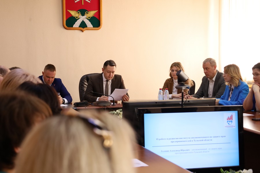 В нем приняли участие уполномоченный по защите прав предпринимателей в Тульской области Александр Головин, руководители центров поддержки и развития малого и среднего предпринимательства, правоохранительные органы, представители банков.