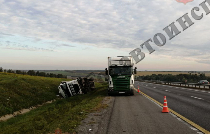 На трассе М-4 «Дон» в Тульской области перевернулась фура с нетрезвым водителем