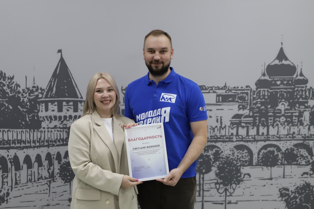 За активное участие проекте «Верный друг» и помощь приютам для бездомных животных Тульской области отмечены Матвей Степин, Артур Ващенко, Светлана Фокина, Кирилл Сидоренко, Богдан Божко, Елизавета Симионова и Екатерина Булыкина. Благодарности ребятам вручил депутат Тульской городской Думы, руководитель регионального отделения «Молодой Гвардии Единой России», региональный координатор партпроекта «Защита животного мира» Никита Бурвиков.