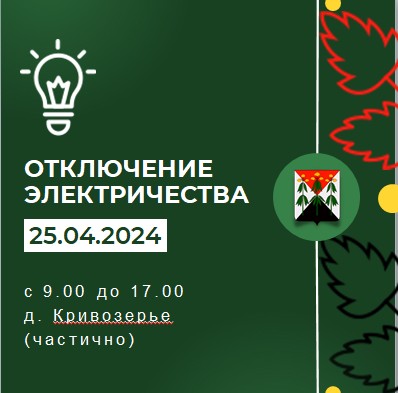 25 апреля - с 09:00 до 17:00 отключение электроэнергии, Кимовский район, д. Кривозерье.
