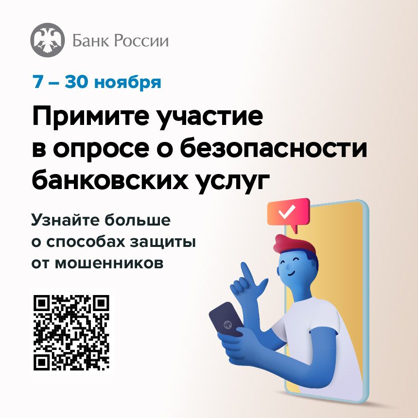 С 7 по 30 ноября Банк России приглашает граждан и представителей бизнеса принять участие в опросе о безопасности финансовых услуг.