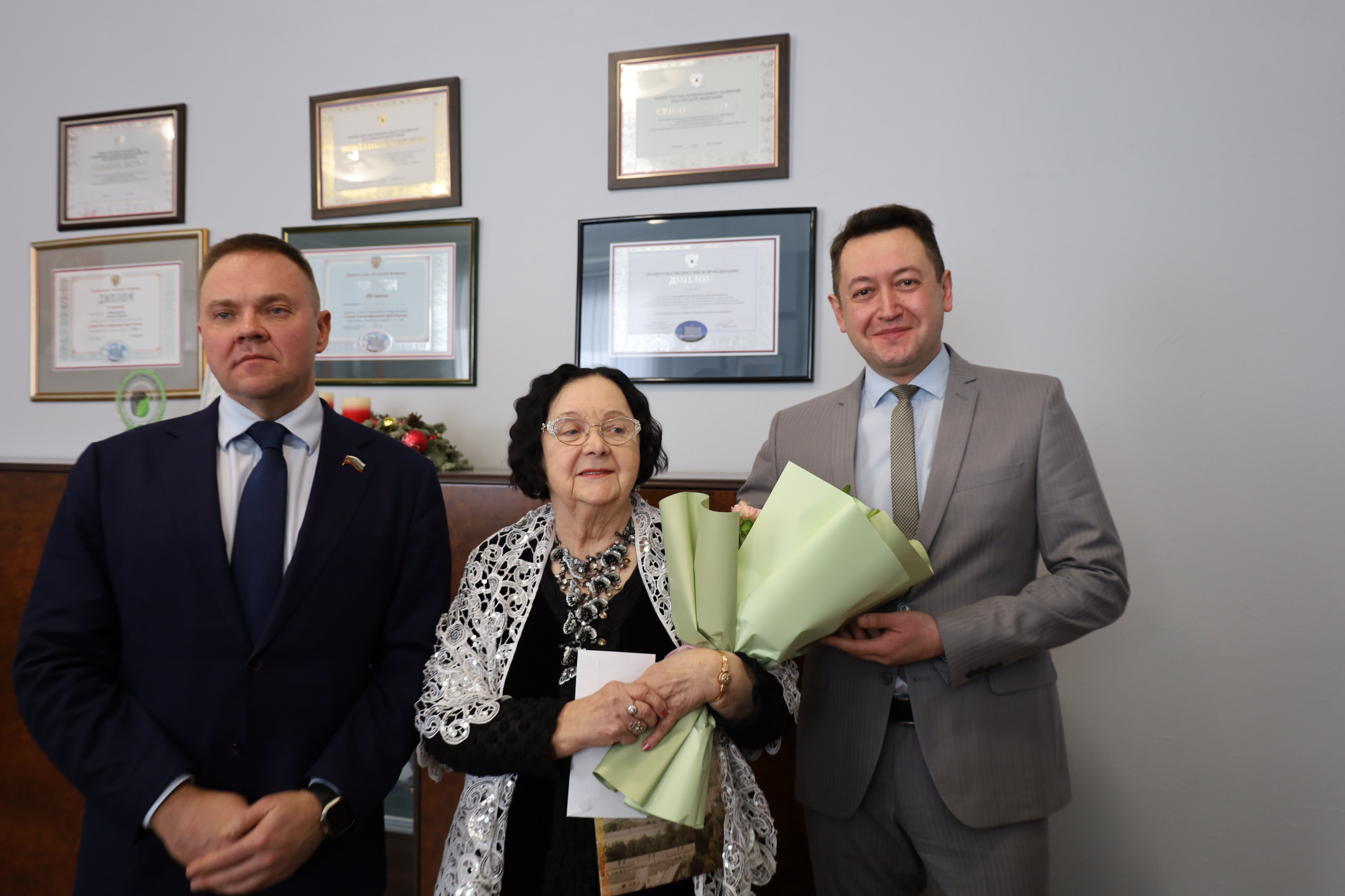 В администрации города Александру Андреевну поздравили руководители города – глава Новомсоковска Алексей Платонов и глава администрации Руслан Бутов.