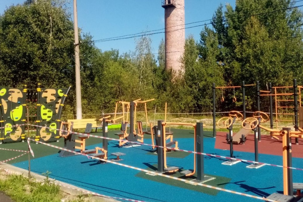 На детско-спортивной площадке в д. Егнышевка работы подходят к завершению, уложено безопасное покрытие из резиновой крошки, установлены спортивные и игровые элементы.