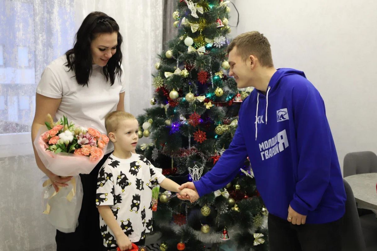 Активисты волонтерского центра партии «Единая Россия» навестили Марину Пудину и ее сына. Супруг Марины ушел защищать Родину в зону специальной военной операции. Для женщины и пятилетнего Артема представители «Молодой Гвардии» и «Волонтерской Роты» доставили цветы, чайный набор, сладкие подарки и детские игрушки.