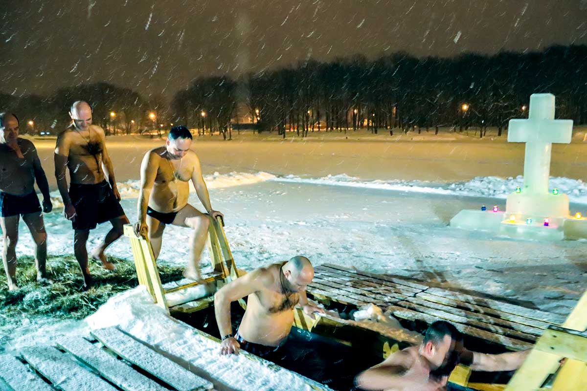 В этот, как правило, морозный день нужно трижды окунуться в купель с ледяной водой. К иорданям, прорубям в виде креста, выстраиваются целые очереди желающих – там можно встретить даже детей и женщин.