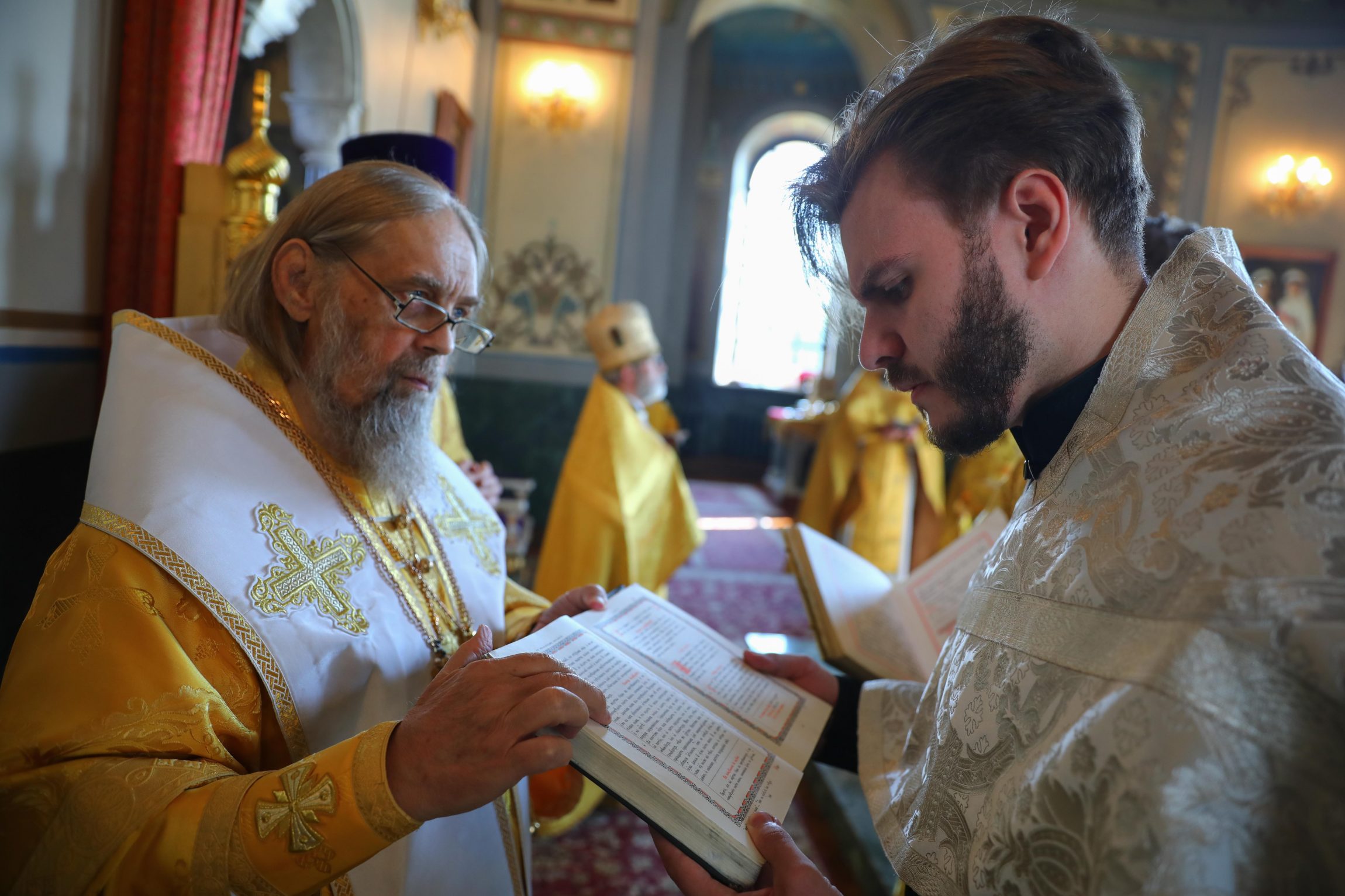 На сугубой ектении вознесены молитвы о благопоспешении христолюбивому Российскому воинству в установлении мира в сию лихую годину, на Святую Русь нашедшую, о мире на Украине, а также о сохранении единства святого Православия.