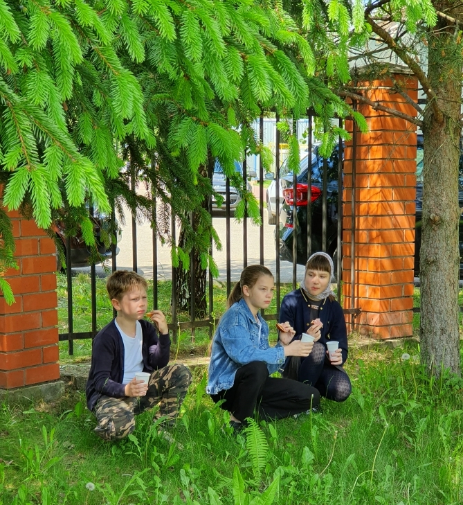 В церковном дворе преподаватель воскресной школы Александра Сысоева провела итоговое мероприятие и прочитала стихотворение монаха Лазаря «Летом».