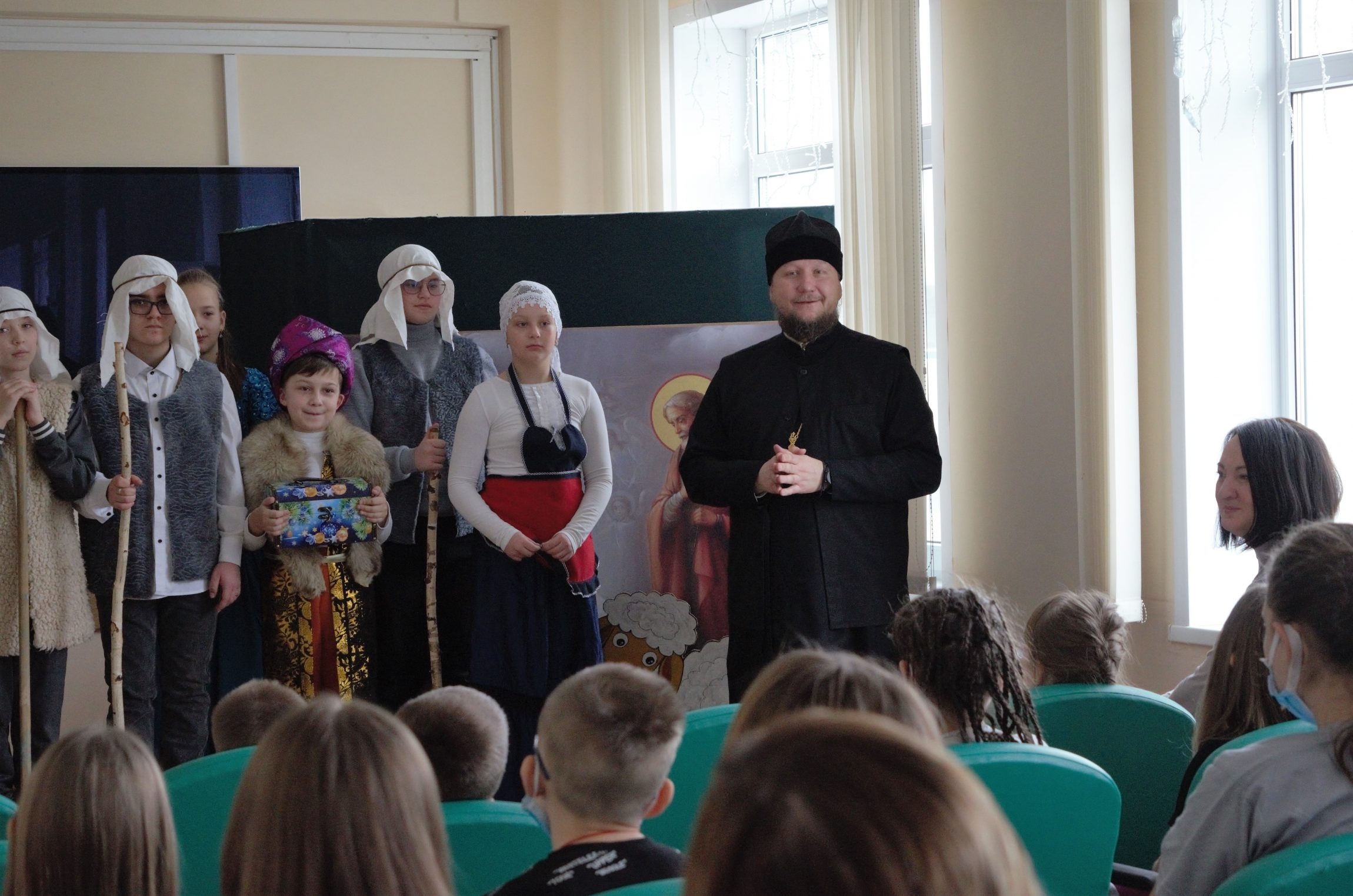 Представляя детям и их родителям творческий коллектив воскресной школы, настоятель храма святого великомученика Димитрия Солунского протоиерей Максим Троеглазов отметил: « Рождество Христово – это радостный и важный праздник в жизни каждого верующего человека. И вот этой радостью о Христе мы должны делиться с каждым человеком. Поэтому мы, в силу наших возможностей, хотим и вас одарить этой радостью».