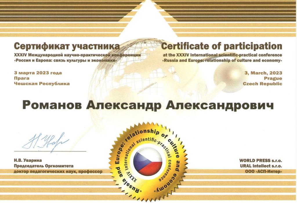 Проректор по учебной работе Тульской духовной семинарии иерей Александр Романов принял участие в XXXIV Международной научно-практической конференции «Россия и Европа: связь культуры и экономики», проходившей 3 марта 2023 года в очно-дистанционном формате.