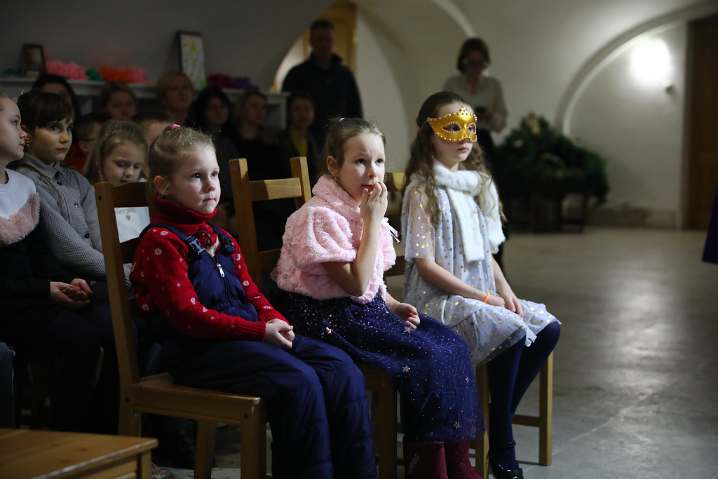 Отец Сергий призвал собравшихся принести свои дары Богомладенцу и каждому сделать в эти светлые Святочные дни хотя бы одно доброе дело, порадовать, обогреть теплом хоть одну человеческую душу. Словно внимая словам отца Сергия, активисты Молодежного добровольческого центра подарили искреннюю радость тем, кто через несколько лет, возможно, вступит на стезю добровольчества и так же, как и они, станет проповедовать Евангельские истины. В основу спектакля, который православная молодежь представила в этот день перед зрителями, легла вымышленная история похищения Вифлеемской звезды. В ней нашлось место преданности и предательству, искренности и обману, силе духа и малодушии, и, как водится в сказках, победило добро.