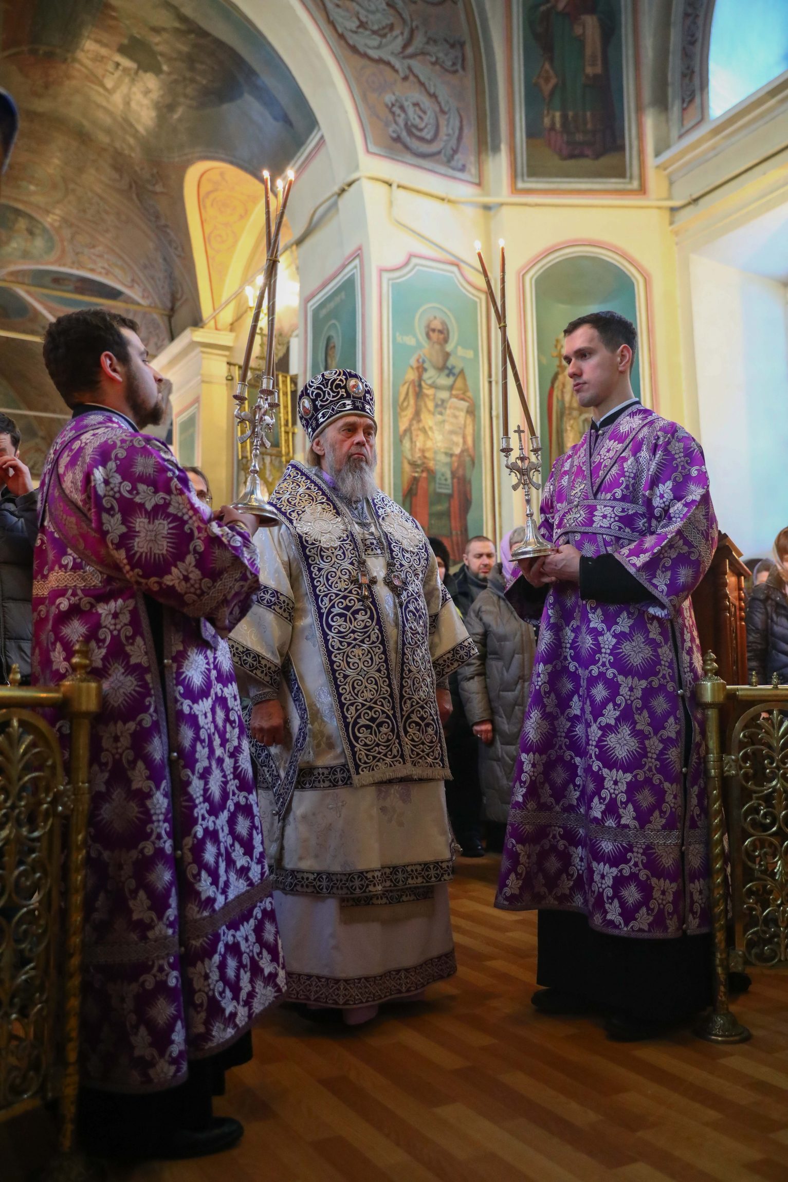На сугубой ектении вознесены молитвы о благопоспешении христолюбивому Российскому воинству в установлении мира в сию лихую годину, на Святую Русь нашедшую, о мире на Украине, а также о сохранении единства святого Православия.