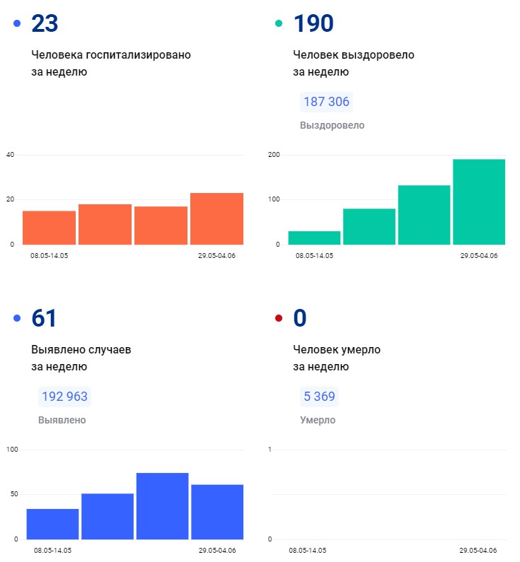 Всего с начала пандемии в регионе заболели 192 963 человека, а выздоровели — 187 306. Общее число умерших туляков за последние несколько месяцев не изменилось. Оно составляет 5 369.