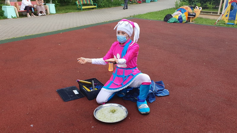 В программе были представлены фокусы и удивительные превращения. Море радости, позитива, веселый зажигательный смех, желание оказаться первым, поскакать и попрыгать под ритмичную музыку и увидеть радужный фейерверк мыльных пузырей- вот секрет настоящего большого детского счастья.