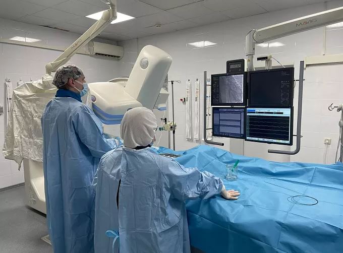Региональный сосудистый центр Тульской городской клинической больницы скорой медицинской помощи им. Ваныкина работает с 2021 года. Благодаря нацпроекту «Здравоохранение» он оснащен современным ангиографом. С его помощью врачи проводят коронарографию с последующей установкой стента в сосуды для восстановления кровоснабжения сердечной мышцы.