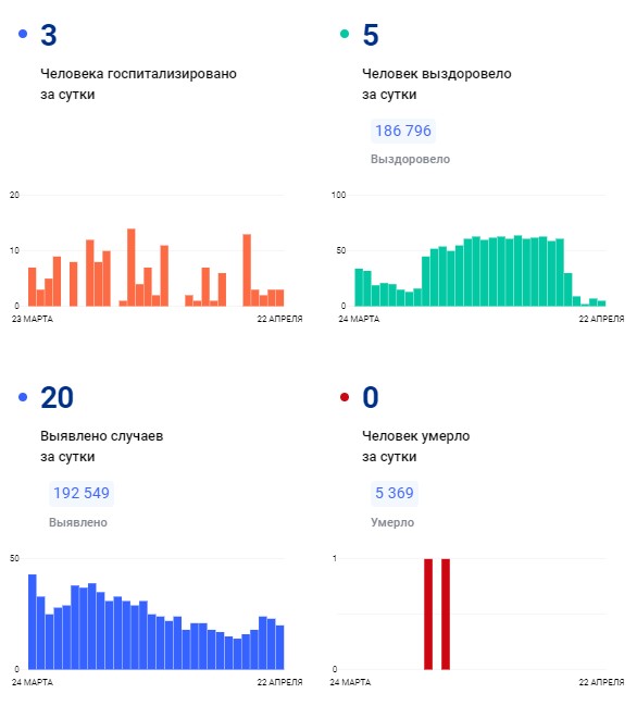 Всего с начала пандемии в регионе заболели 192 549 человек, а выздоровели — 186 796. Общее число умерших туляков к 22 апреля достигло 5 369.
