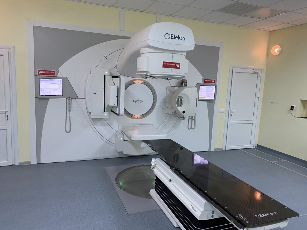 « Основным преимуществом современного оборудования является то, что мы имеем возможность максимально точно подвести дозу облучения к самой опухоли и при этом максимально защитить от переоблучения здоровые органы и ткани. Устаревшее оборудование на такое не способно, то есть попытка подвести такую радикальную дозу на устаревшем оборудовании не только не полезна для пациента, иногда она вреднее больше, чем сама опухоль. Согласитесь, лечение не должно быть тяжелее болезни. Так, например, из клинических рекомендаций исчезла такая опция как проведение лучевой терапии с перерывами. Раньше, ещё несколько лет назад, такое лечение получало множество пациентов с раком предстательной железы, раком прямой кишки, многими другими локализациями, раком пищевода, раком легкого. Сегодня ученными доказано, что перерывы в лечении всегда приводят к потере качества, эффективности. В тоже время оборудование, которое установлено в Новомосковске не позволяло проводить такое лечение без перерывов из-за того, что в процессе лечения у пациентов практически в 100% случаев развивались серьёзные, токсические явления, лучевые реакции, которые требовали перерыва.