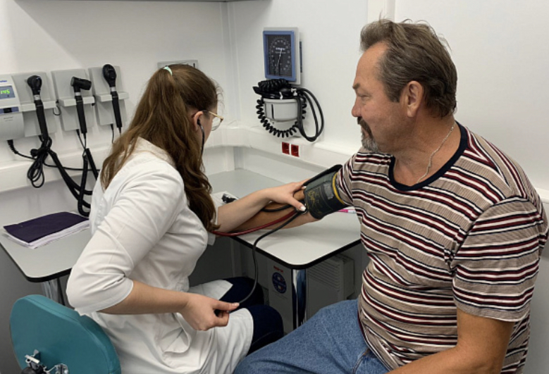 Жители сдали экспресс-анализ на глюкозу, измерили артериальное давление, проверили уровень кислорода в крови, функцию дыхания и силу мышц рук, а также проверили поверхность кожи на наличие предраковый новообразований. Мужчины сдали анализ крови на онкомаркеры.