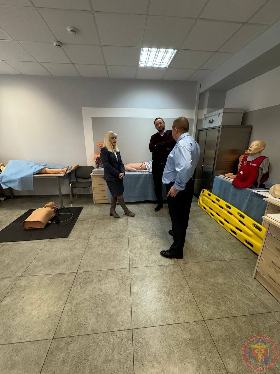 Делегации показали, как устроен передвижной пункт управления на базе автомобиля Ford. Он оснащен IP-телефонией, выходом в интернет и усилителем сотовой связи. Также гости осмотрели симуляционные классы для занятий по отработке навыков проведения манипуляций и оказанию экстренной помощи.